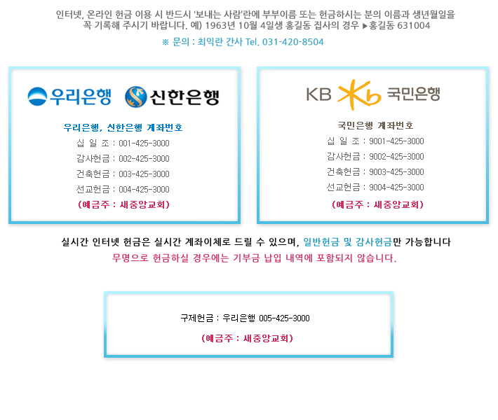 Home > 교회소개 > 예배안내 > 인터넷 온라인 헌금안내