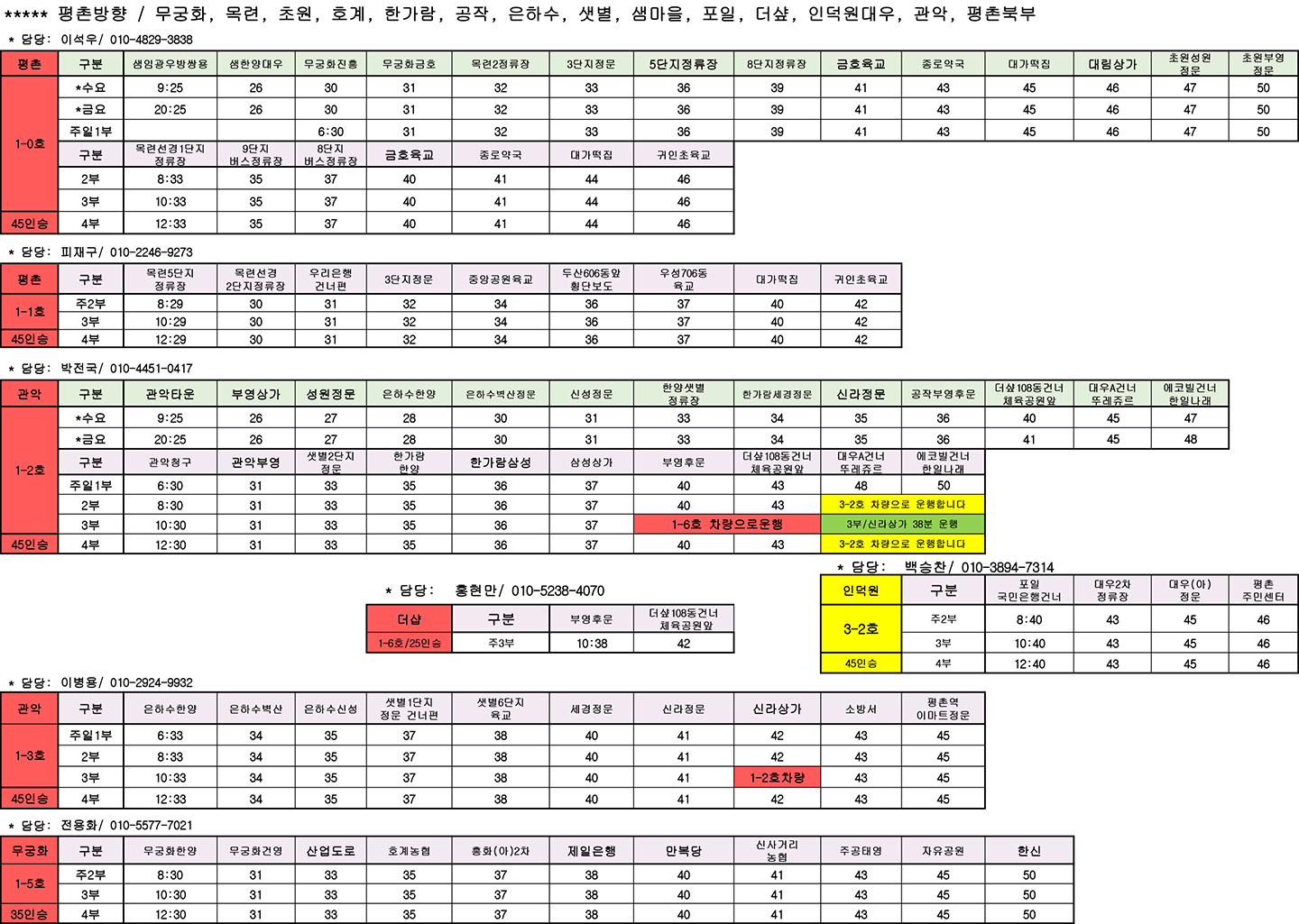 ( 무궁화ㆍ목련ㆍ초원ㆍ호계ㆍ한가람ㆍ공작ㆍ은하수ㆍ샛별ㆍ샘마을ㆍ포일ㆍ더샵ㆍ인덕원대우ㆍ관악ㆍ평촌북부 )