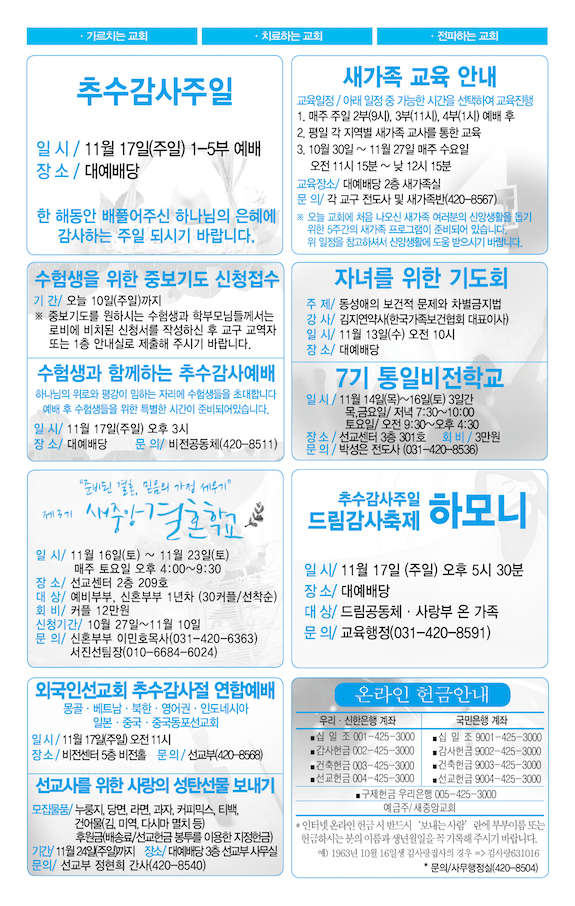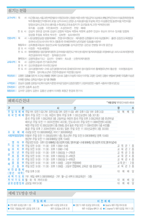교회안내 예배시간 안내 교회시설 안내 주보 안내 가정예배 안내 오시는 길