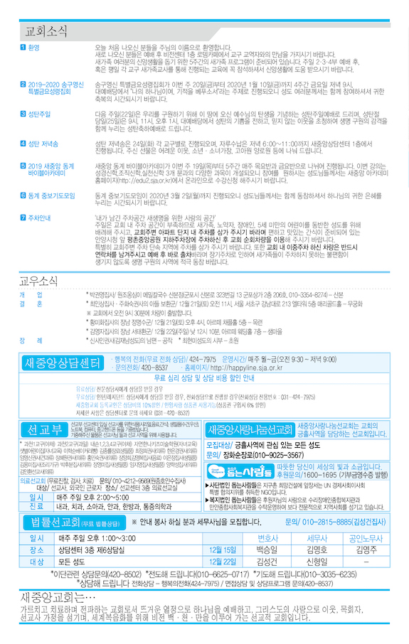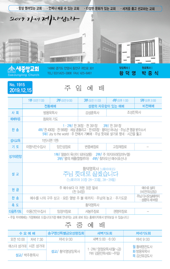 새중앙교회 안내 인사말 비전 연혁 교회소개 영상 교회전화번호 교회장소 안내 교회장소 사용예약