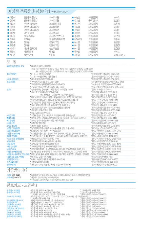 교회소개 인사말 새가족 등록 안내 교구사역 소개