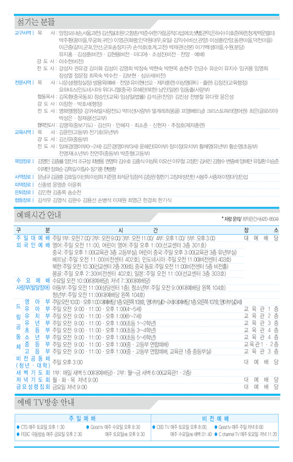 교회안내 예배시간 안내 교회시설 안내 주보 안내 가정예배 안내 오시는 길