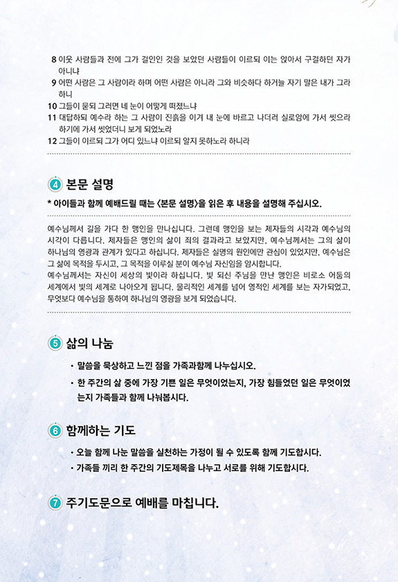 교회안내 예배시간 안내 교회시설 안내 주보 안내 가정예배 안내 오시는 길