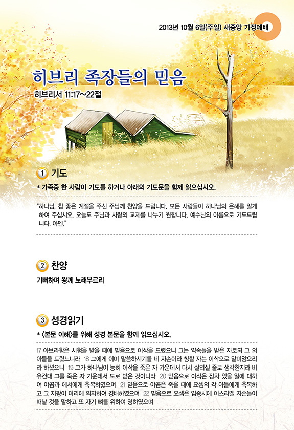 교회안내 예배시간 안내 교회시설 안내 주보 안내 가정예배 안내 오시는 길